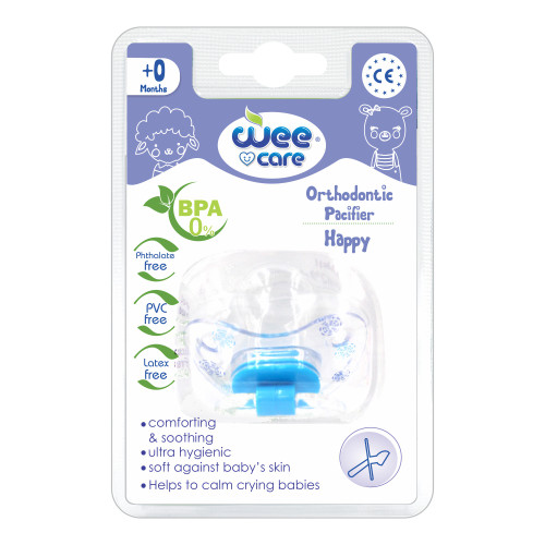 (Wee Care-P115)- پستانک ارتودنسی شفاف چاپدار وی کر مدل happy سایز 1
