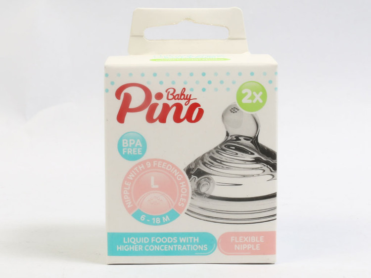 سر شیشه شیر نوزادی دخترانه و پسرانه از برند پینو بیبی مناسب استفاده دلبندان 6 الی 18 ماه، مدل L با جریان سریع دارای 9 سوراخ روی سر شیشه، که شبیه به سینه مادر طراحی شده و مناسب برای خوراکی های مایع نوزادان عزیز می باشد.
